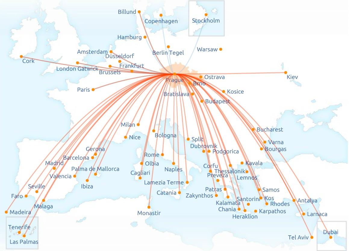 地图捷克航空公司的航线。 捷克航空公司的路线图(东欧的欧洲)进行打印。 捷克航空公司的路线图(东欧的欧洲)下载。 捷克航空(天合联盟)截至2021年1月,服务于17个国家的1个国内目的地和20个国际目的地。19个联盟成员每年累计运送旅客超过6.3亿人次,每天有超过14500个航班可供选择,飞往全球175个国家的1150个目的地,如捷克航空航线图所示。捷克航空公司参加Routes活动,与世界各地的现有和潜在的合作伙伴讨论航线发展。