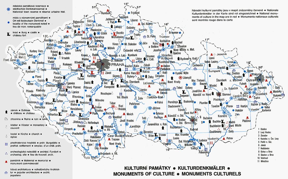 捷克共和国古迹的地图
